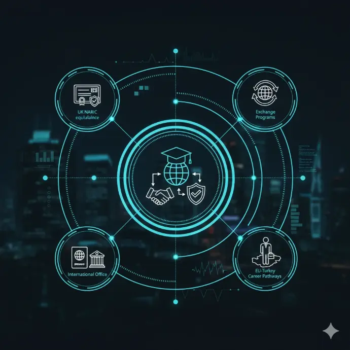 تبدأ الرسوم الدراسية من 2600 دولار أمريكي سنويًا مع منح دراسية تصل إلى 80% تضمن الوصول العالمي إلى الدرجات العلمية المعتمدة من YÖK/YÖDAK.