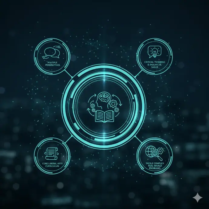 قم ببناء مهارات التفكير النقدي والتحليلي من خلال منهج أساسي للفنون الليبرالية والذي يؤهلك للتعامل مع المشكلات المعقدة في العالم الحقيقي من وجهات نظر متعددة.