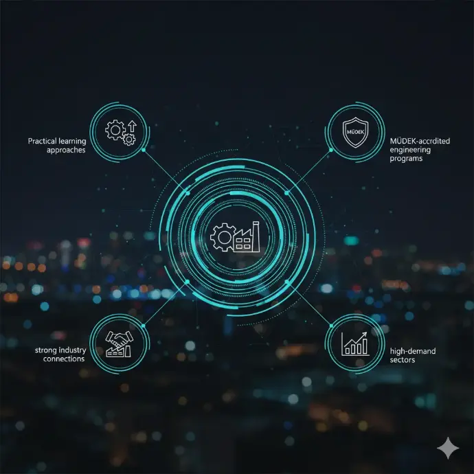برامج هندسية معتمدة من MÜDEK مع روابط قوية بالصناعة ومنهجيات التعلم العملي.
