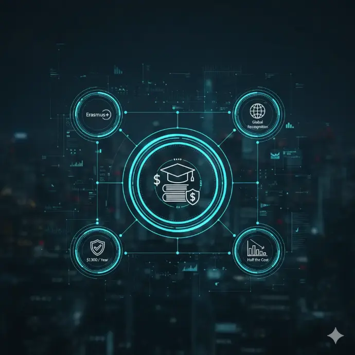 أكثر من 150 اتفاقية Erasmus+ ودرجات مزدوجة مع جامعات الولايات المتحدة والمملكة المتحدة وآسيا تمكن التبادل والتدريب والتقدم الوظيفي الدولي.